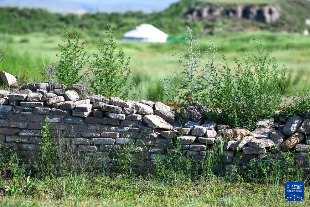 7月13日拍摄的内蒙古锡林郭勒盟正蓝旗金莲川草原上的元上都遗址一角。新华社记者 贝赫 摄