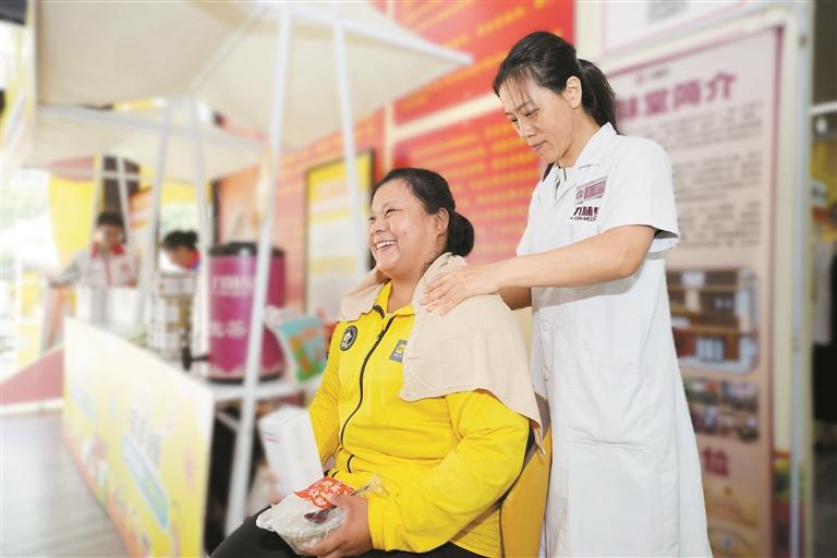 活动现场设置健康义诊区,为骑手们提供免费血压测量、健康咨询及中医推拿服务,帮助他们在高强度工作之余关注自身健康。口腔检查摊位人气火爆,不少骑手和家属纷纷前来检查。