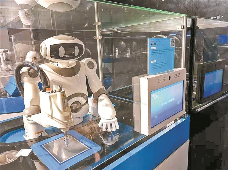 机器人绘画设备显示屏一直处于“正在开机”状态。本版图片由 刘杭琦 韦长风 摄