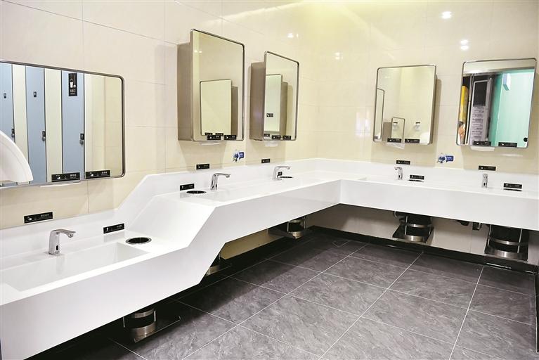 按照管理规范要求,罗湖综合交通枢纽东出口公厕对基础设施、功能布局进行了升级,增大了女厕空间。该公厕原本男女厕位比仅为1:0.79,通过合理优化布局,现调整为1:1.63,满足管理规范中男女厕位比不低于1:1.5的要求,能有效减少客流高峰期间女性排队等候时间。