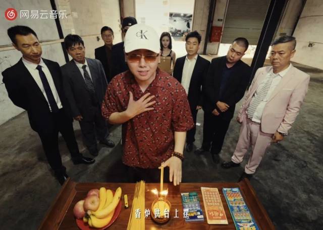 举个例子,《大展鸿图》里那句“水池里面银龙鱼”,听起来像炫富,其实是广东许多小康家庭的标准配置:银龙鱼是吉祥物,象征富贵、驱邪、镇宅,“他研墨下笔直接给我四个字”则浓缩了广东人相信“字能转命”“符能求财”的民俗文化;在《八方来财》MV里,揽佬在红木桌上摆起香炉、果盘、刮刮乐,又趣味复刻了拜神的那一套流程。