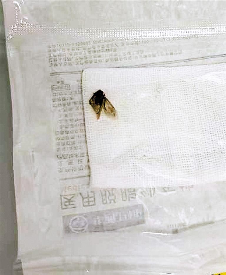 医生从老高耳道取出的小飞虫。 深圳晚报记者 高向荣 摄
