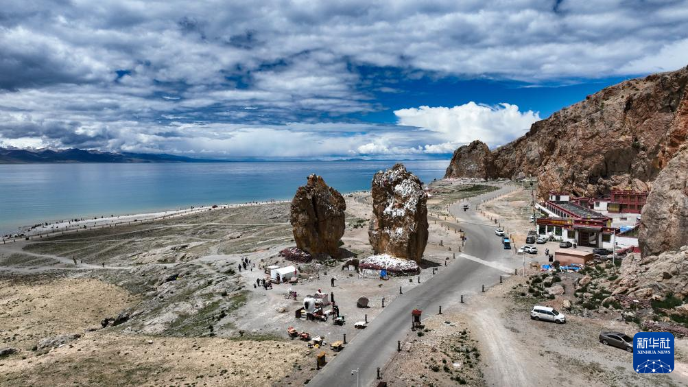 7月16日拍摄的纳木错扎西岛景区风光(无人机照片)。