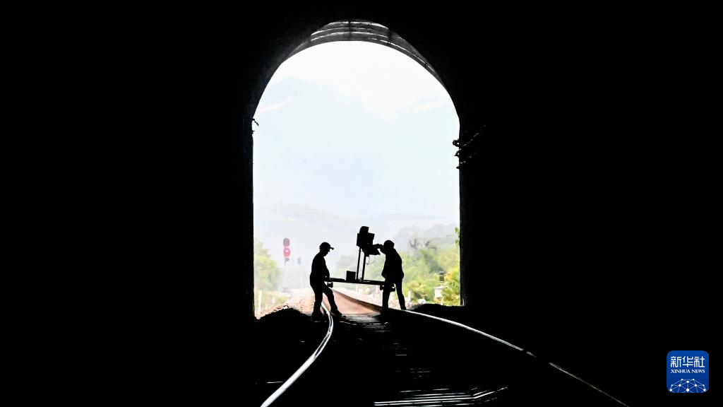 桥隧工人巡检隧道(7月16日摄)。新华社记者 张爱林 摄
