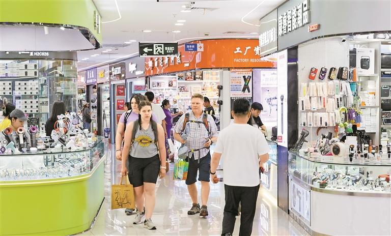 深圳持续提升外籍来华人员支付便利,打好优化支付服务“持久战”。图为外国人在华强北消费。 深圳特区报记者 杨浩翰 摄