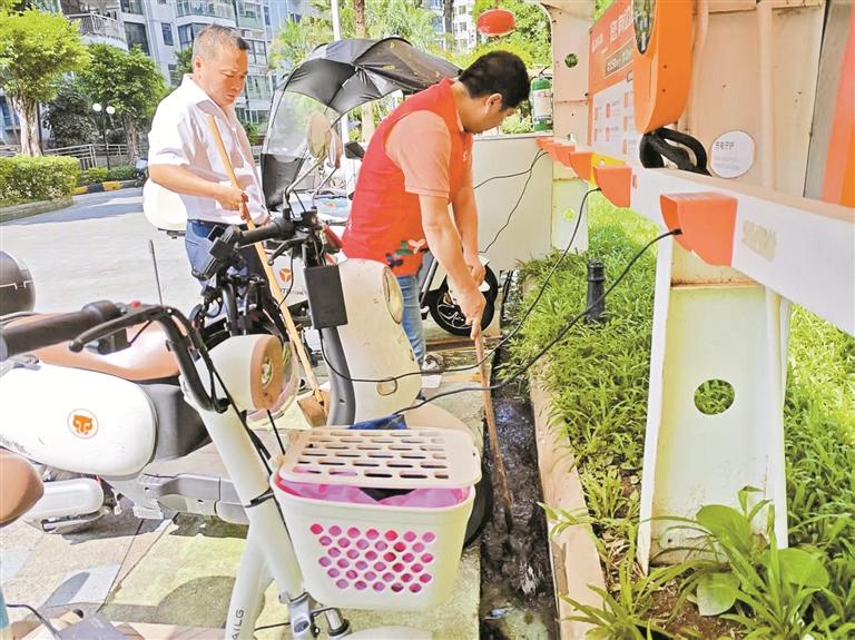 工作人员开展环境卫生整治,清理积水、灭杀蚊虫。