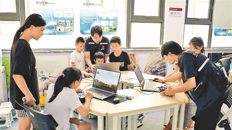▲樟坑径社区青少年们进行电脑模拟飞行。