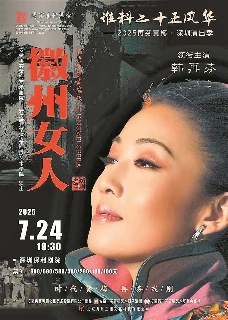 深圳新闻网2025年7月25日讯(深圳晚报记者 赵伟君)三台大戏,串联古今;二十风华,黄梅“芬芳”。7月24日至27日,“谁料二十正风华”——2025年再芬黄梅·深圳演出季在深圳保利剧院唱响,中国戏剧家协会副主席、黄梅戏表演艺术家韩再芬携老中青三梯队演员,为深圳观众带来经典作品《徽州女人》《徽州往事》《女驸马》。