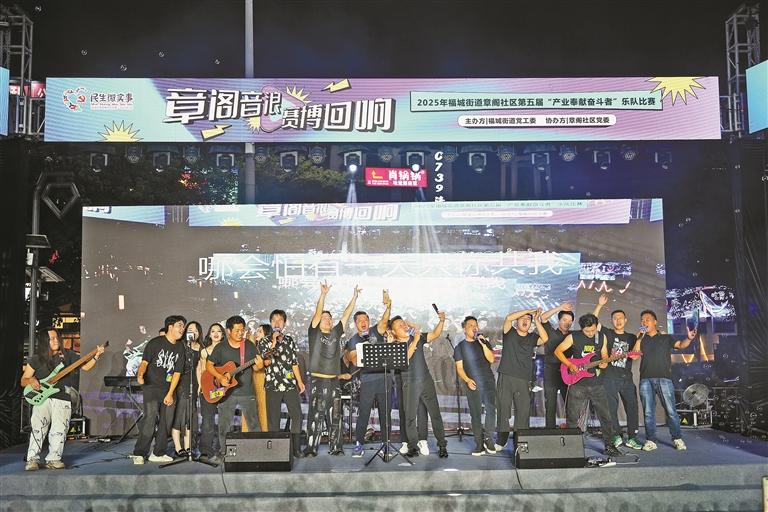 “这是属于产业奉献者的舞台。”杨锦天的话道出初衷,“我们想通过这样的比赛,以音乐为媒介,搭建起怀有梦想的社区青工与社区之间的沟通桥梁,更好地服务他们,激励大家去奋斗、去追梦。”五年来,乐队比赛不仅成了章阁的文化名片,更践行着“远亲不如近邻”的理念:当全场齐唱《明天会更好》时,陌生邻里因合唱相视一笑,青工们在旋律中找到“扎根福城、扎根章阁”的归属感。