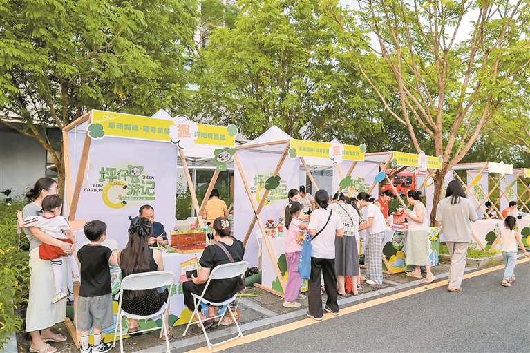 来自本土的龙秦箫演奏、麒麟舞表演、客家山歌对唱等非遗展演,让传统技艺与低碳理念碰撞出新火花;C游趣集里的坪地优品琳琅满目,吸引不少市民朋友驻足体验。