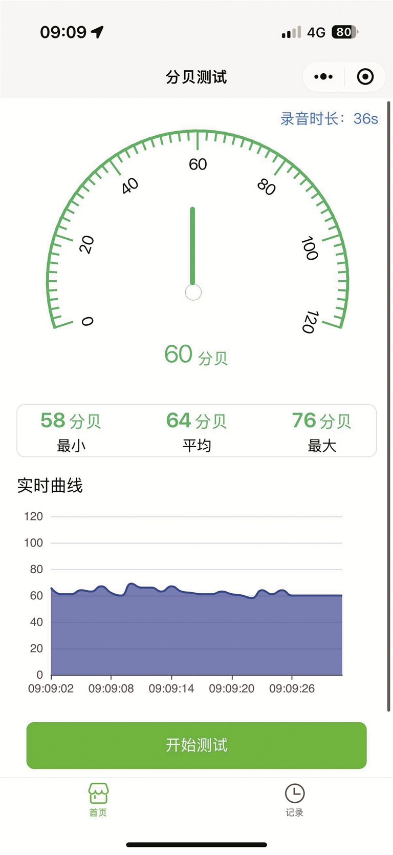 ▲记者监测到的电梯分贝。