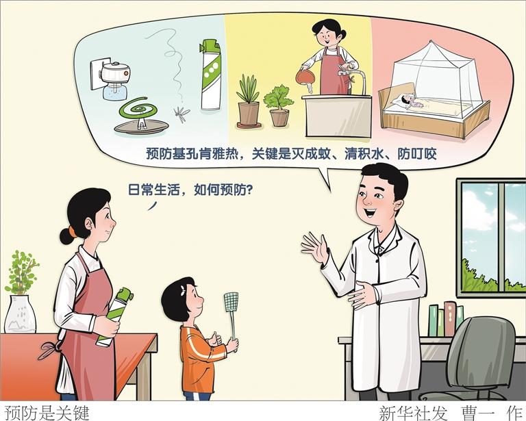何剑峰等专家表示,基孔肯雅热是伊蚊传播,伊蚊是依靠积水繁殖后代的,预防基孔肯雅热,关键是灭成蚊、清积水、防叮咬。