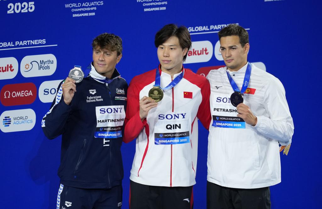 新华社新加坡7月28日电(记者 夏亮、周欣)58秒23!金牌!获胜后的覃海洋手持五星红旗,不断向现场观众致意。