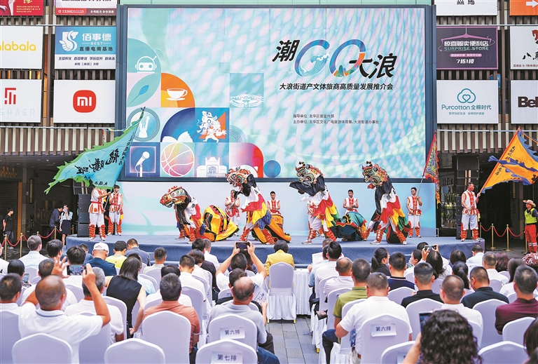 龙华新闻讯(记者 周德萌 通讯员 陈虹/文 记者 蔡维泽/图)7月31日,大浪街道后浪新天地商圈人潮如织。随着国家级非遗——大船坑舞麒麟欢快跃动,大浪街道产文体旅商高质量发展推介会暨“潮GO大浪”文旅消费季启动仪式火热开启,正式拉开消费季序幕。