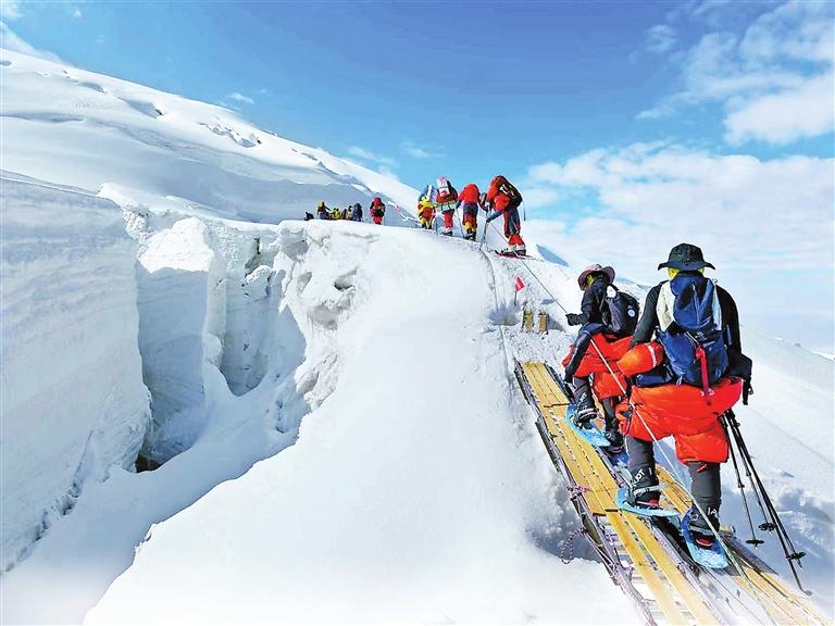 登山途中,马湘妮紧跟队友前行。(受访者供图)