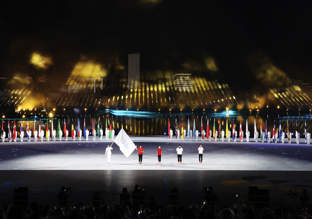 ↑全体运动员、教练员、裁判员、国际单项体育联合会官员代表宣誓。新华社记者 梁旭 摄