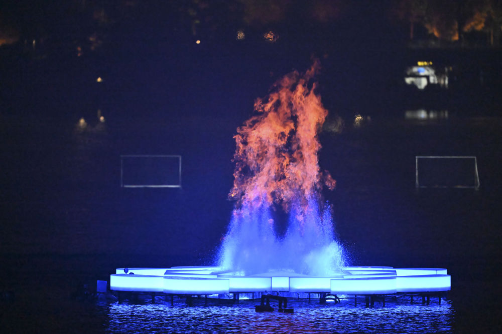 ↑这是在开幕式现场拍摄的主火炬。新华社记者 孙凡越 摄