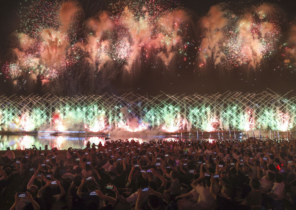 ↑这是开幕式上的焰火表演。 新华社记者 陈振海 摄