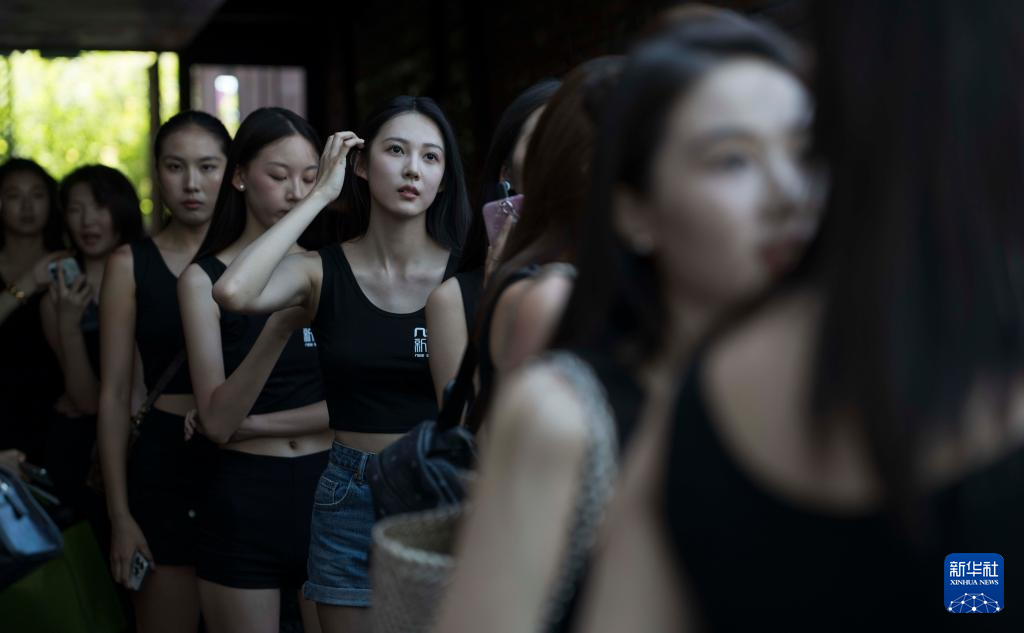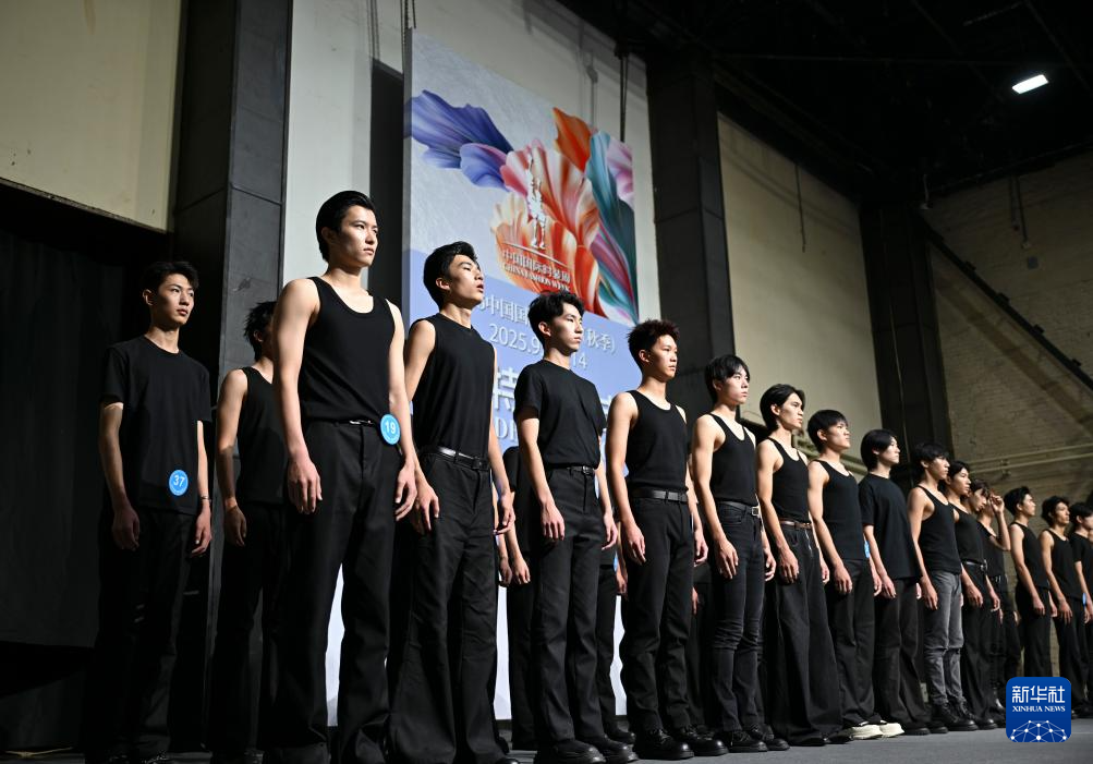8月7日,在北京798·751园区举办的2025中国国际时装周(秋季)模特大面试上,模特在等待上场。
