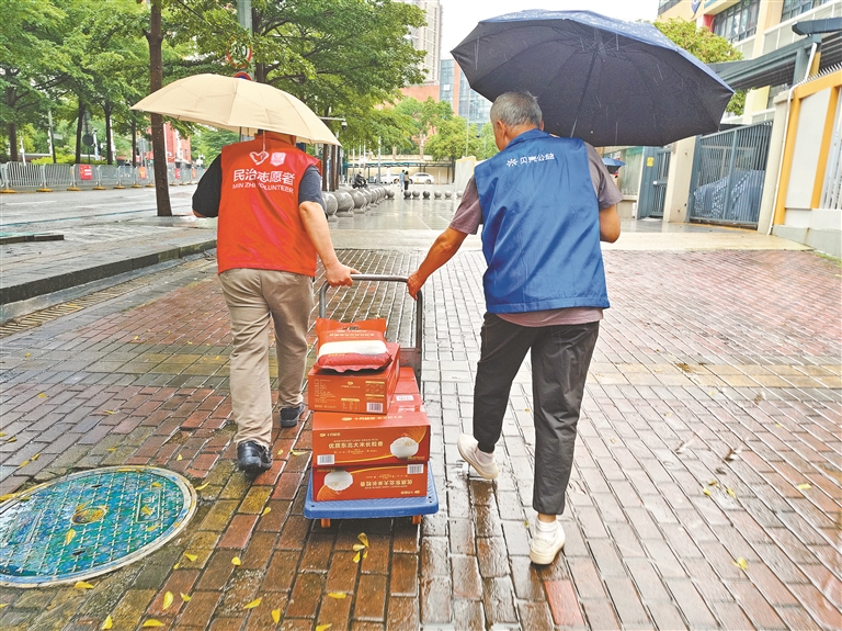 活动当天,志愿者与爱心企业工作人员仍早早集合,将筹备好的400斤优质大米按10斤一包,逐一送往居民家中。每到一户,大家都详细询问居民的生活状况,叮嘱他们雨天注意出行安全、做好居家防护,并亲手将大米送到居民手中。