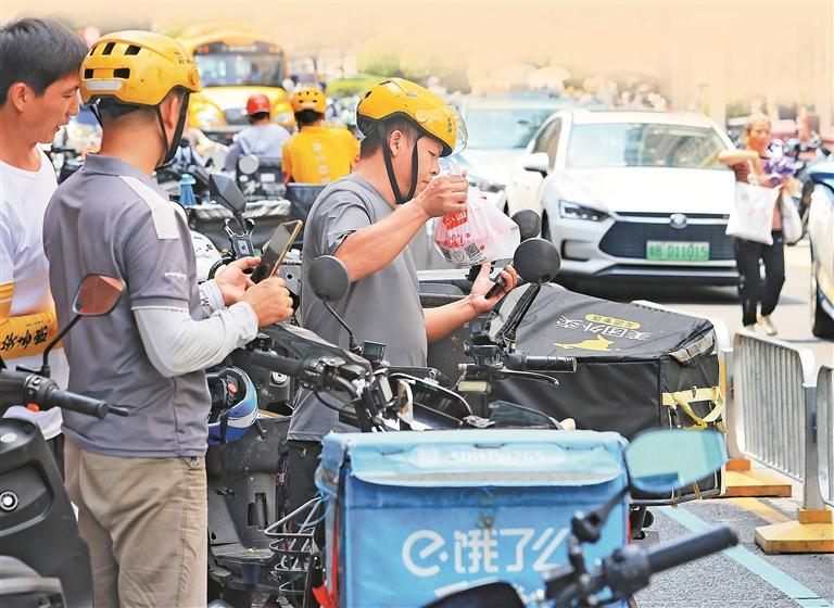 外卖员在取餐、送餐的路上忙碌奔波。深圳晚报记者 陈玉 摄