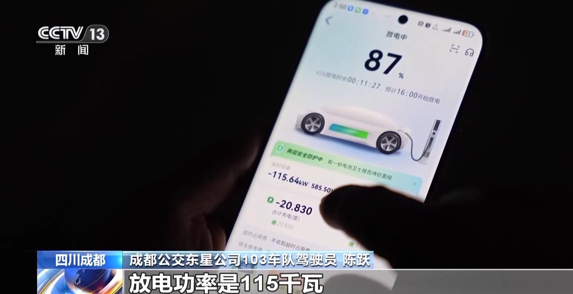 陈师傅正在操作的就是成都公交正在试点的“车网互动”项目,今年国家发展改革委等四部门联合发布通知,支持车网互动规模化应用,在保障日常运营优先的前提下,公交车可以利用自身剩余电量,反向为电网放电,缓解电网负荷压力。