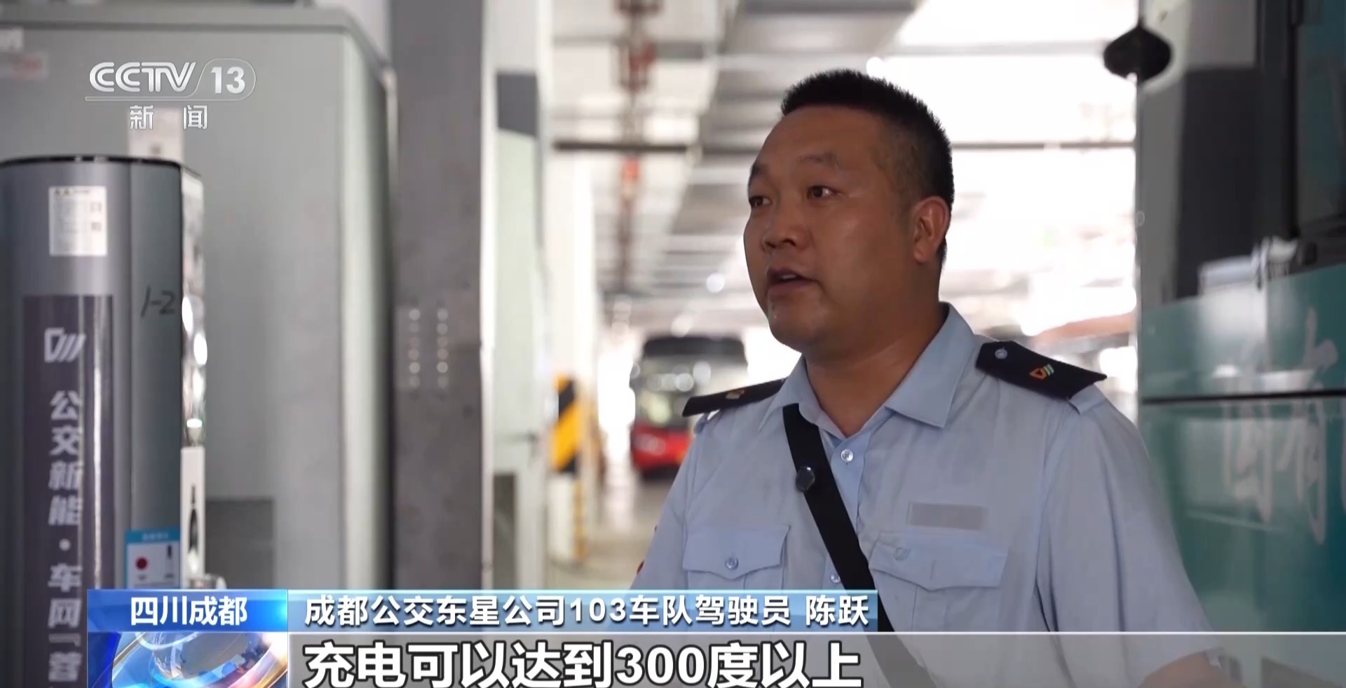 成都公交东星公司103车队驾驶员 陈跃:我们这个公交车是一个长续航的公交车,充电可以达到300度以上,我们利用晚上的低谷段充电,然后我们白天跑完以后剩的电量,多余的可以进行反向充电。