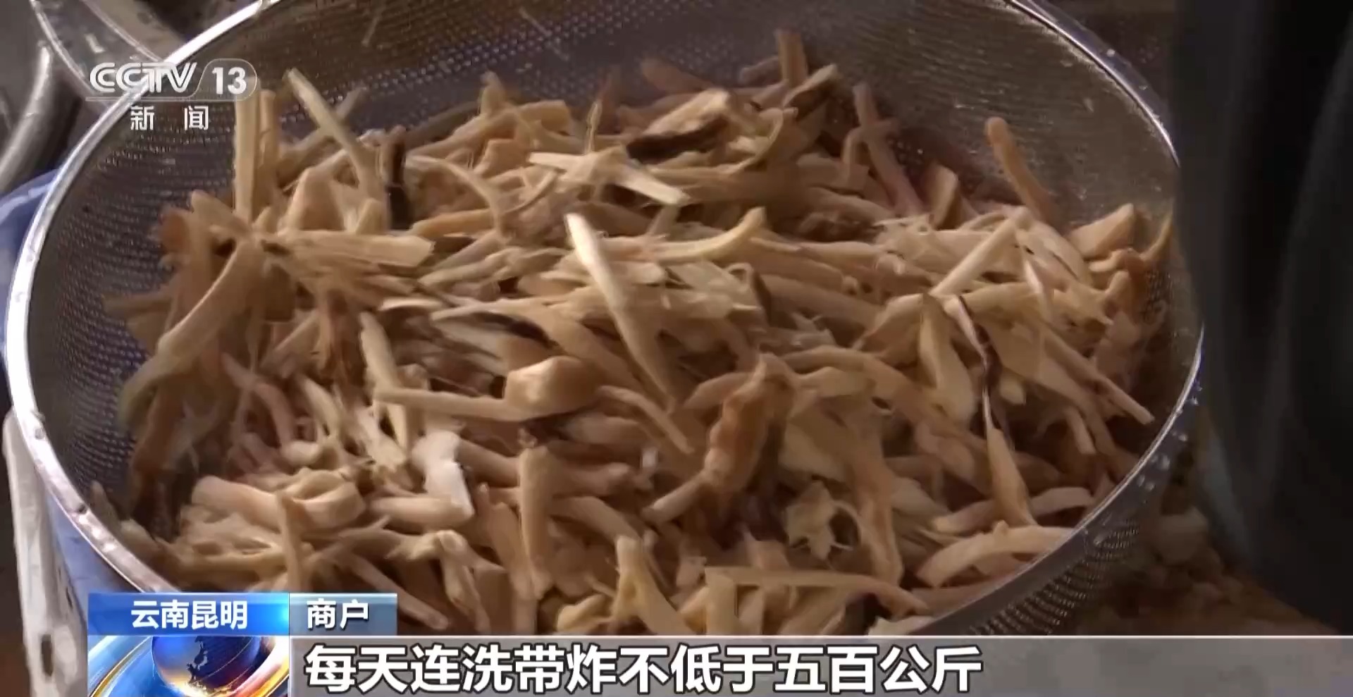 每年7到8月,都是云南野生菌的销售旺季。随着新鲜鸡枞大量上市,炸油鸡枞又成了人们餐桌上的美味首选。这两天,在昆明市的云南木水花野生菌市场,“代洗代炸”的店铺前排起了长队。