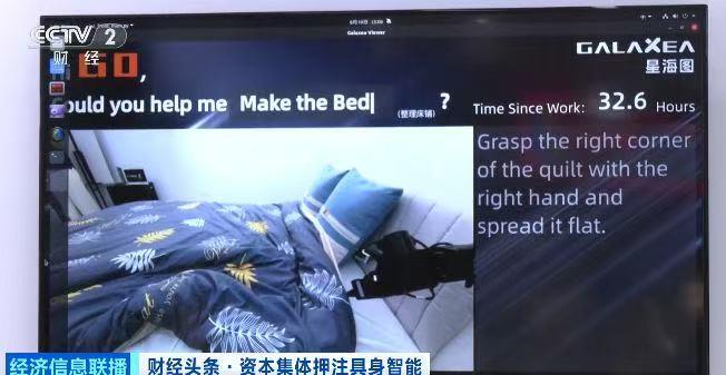 总台央视记者 宁坤:这台具身智能的机器人,正在对卧室床铺的被子做整理和叠放。它是通过视觉识别后,完全自主完成操作。工作人员也告诉我,今年他们这样类似的具身智能机器人,上半年出货量就超过了百台。其中,有近一半就是销往海外,用于大模型的数据采集和研发。