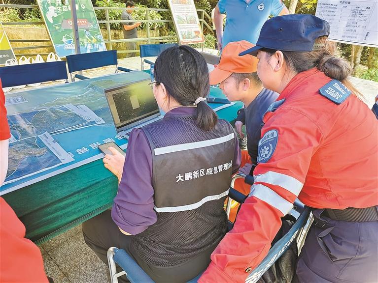 掌握情况后,大鹏新区应急管理、消防救援、专业民间救援队等多部门闻令而动。