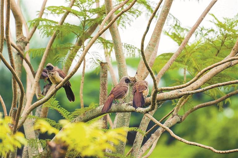 生活在福田红树林生态公园的黑脸噪鹛。 深圳晚报记者 严文婷 摄
