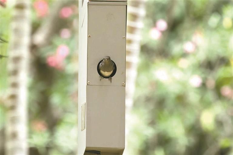 在第三个全国生态日来临之际,深晚记者实地走访发现,该公园现已布设100套这种路灯,其中40套还集成了为洞巢鸟设计的繁殖巢箱。这些繁殖巢箱是为大山雀和鹊鸲量身定制的“新家”。