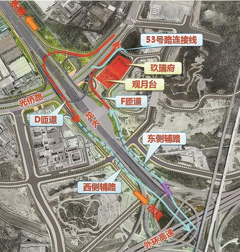 ▲龙大高速光侨立交示意图。