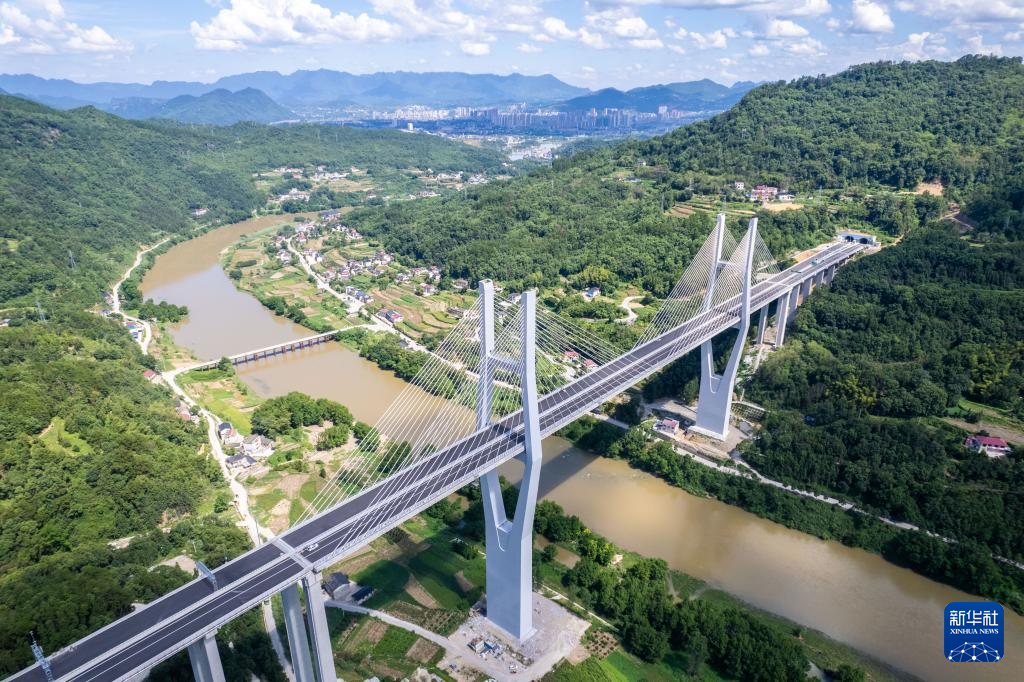 这是8月19日在湖南炉慈高速建设施工现场拍摄的金岭1号特大桥(无人机照片)。