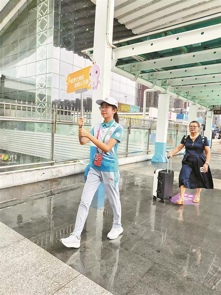 龙华新闻讯(记者 王雪敏 通讯员 彭思梦 黄卓龙/文 记者 蔡维泽/图)“您好!欢迎来到深圳!”在深圳北站川流不息的人潮中,一群跃动的“青绿色身影”格外醒目,他们是来自哈尔滨工业大学(深圳)的“小海豚”志愿者,一群充满干劲的“00后”青年。8月18日和20日,他们以专业的素养和饱满的热情,在深圳北站为来自湖南、贵州、福建等地的十五运会门球项目涉赛人员,成功搭建起了一条从高铁出站到接驳上车的“十分钟暖心通道”。
