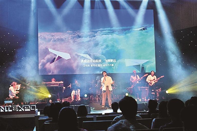 歌手登台用歌声串联韩剧回忆。