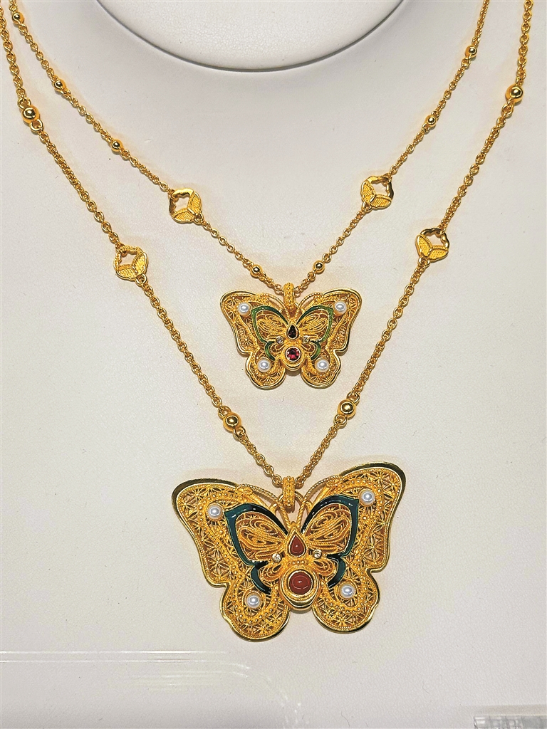 深圳新闻网2025年8月21日讯(深圳晚报记者 郑淑仪 实习生 叶蕗)当24岁的马面裙爱好者小琪在珠宝柜台对一条花丝工艺的网状黄金吊坠爱不释手时,她的选择正是当今黄金首饰消费年轻化的具象。曾经被贴上“老气”“婚嫁专属”“保值工具”标签的黄金,如今凭借新中式设计的创新,成为年轻消费者日常穿搭的“悦己”选择。