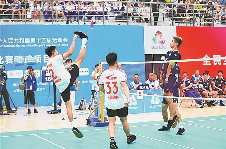 龙华新闻讯(记者 陈欣 通讯员 吴启聪 刘利 文/图)8月20日,在第十五届全运会群众比赛毽球项目男子三人赛甲组决赛中,龙华街道党群服务中心文体专干招俊杰作为广东队主力队员,与队友并肩作战,以2:0优势比分勇夺冠军,为广东代表团再添一枚沉甸甸的金牌。