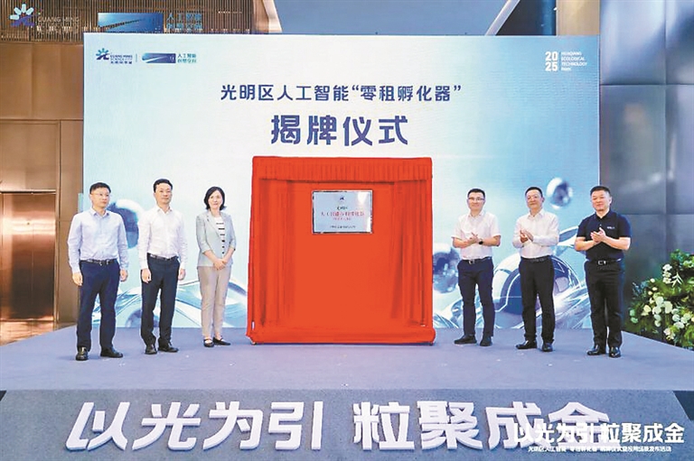 深圳新闻网2025年8月25日讯(晶报记者 柯季/文、图)8月22日下午,光明区人工智能孵化器揭牌仪式暨应用场景发布活动在华强科技生态园举行。本次活动在产业空间拓展应用场景发布、优质企业引进创业智囊储备、算力资源配置等方面取得一系列丰硕成果。现场,光明区首个人工智能零租孵化器——“光引粒·人工智能创想空间”在华强科技生态园揭牌成立。