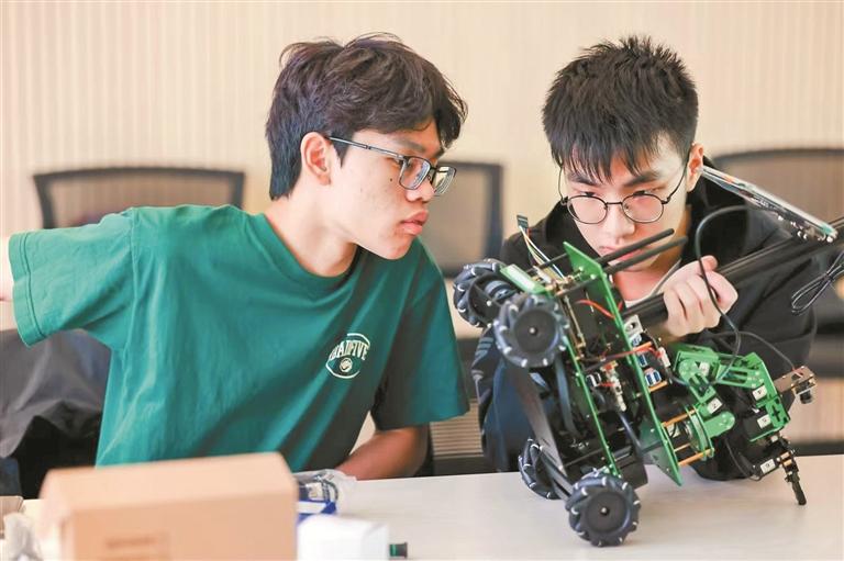 学生进行移动抓取机器人项目设计。(深职大供图)