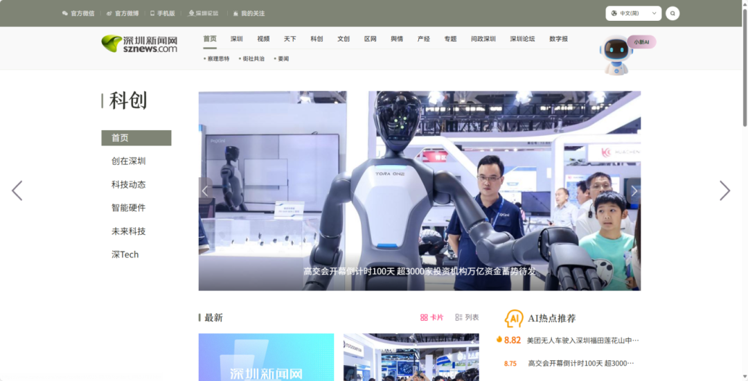在科创领域,网站聚焦5G、人工智能、机器人等前沿科技动态,联合市科创局、重点实验室及头部企业,搭建高效的科创信息与科普传播网络。