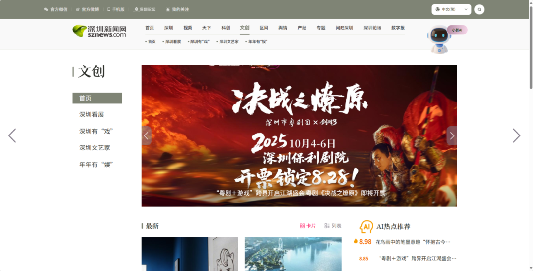 借助科创与文创双轮驱动策略,深圳新闻网极大地丰富了自身内容生态,让这张“数智深圳名片”更全面地展现深圳创新活力与文化魅力。