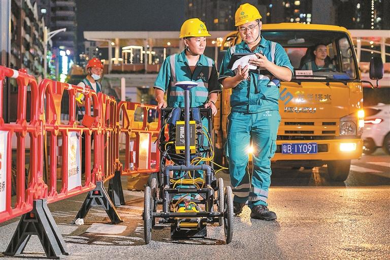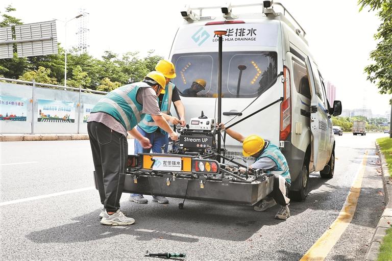 ▲龙华排水公司工作人员开展地质雷达探测工作。