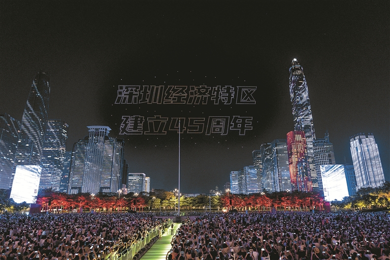 无人机编队组成“深圳经济特区建立45周年”字样。