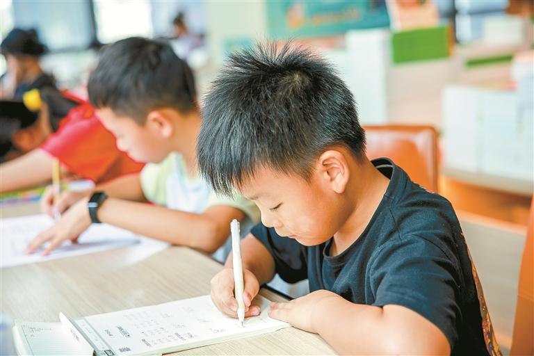 青少年在深圳书城龙华城完成暑期作业。