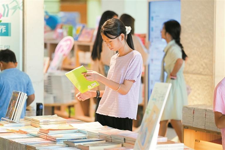 临近开学,青少年在深圳书城龙华城选购书籍。