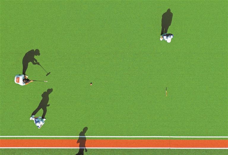 8月27日,深圳龙岗大运中心的门球赛场最后一场比赛在此收官。图为运动员在球场进行比赛。深圳特区报记者 赖犁 摄
