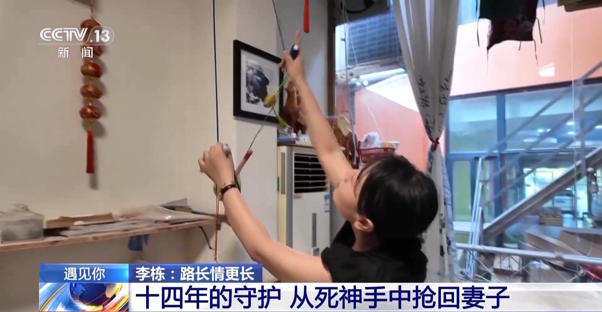 除了站床训练,李栋还在床顶安装了一个拉环,帮助周爱会锻炼手臂力量。一年之后,周爱会的双腿逐渐恢复了知觉,身体也一天天好转,甚至能够借助助行器行走。
