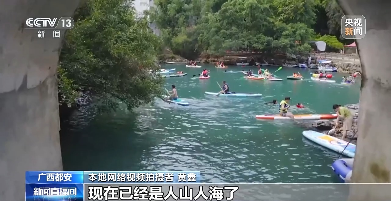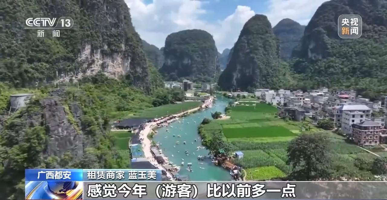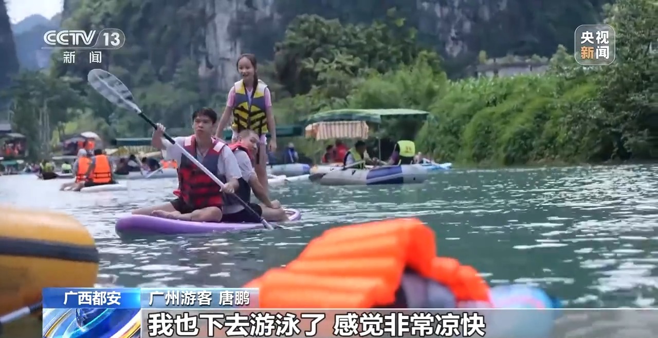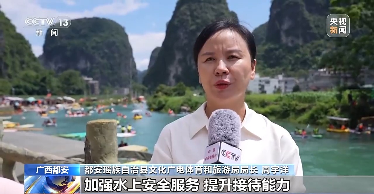 都安瑶族自治县文化广电体育和旅游局局长 周宇洋:“天窗花河游”走红以后,我们一方面培训旅游从业者加强水上安全服务,提升接待能力,另一方面开发桨板、露营等特色项目。下一步,我们持续优化景区周边的服务体系,不断提升游客旅游的体验感。