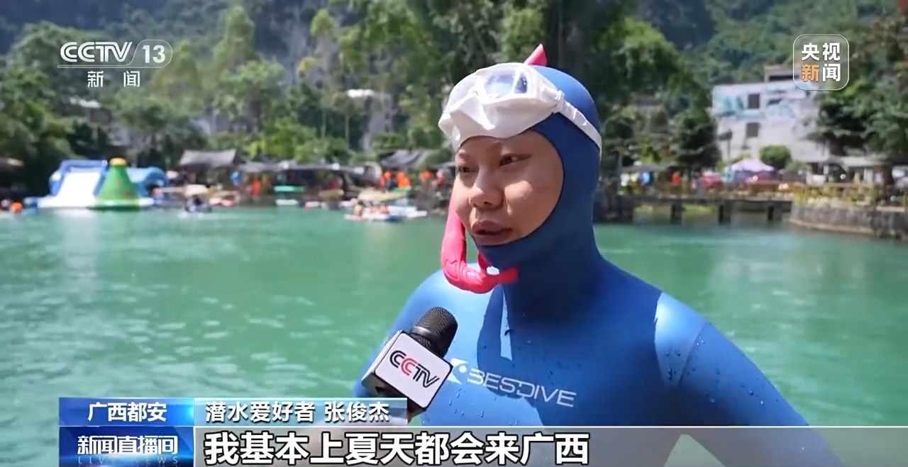 潜水爱好者 张俊杰:我基本上夏天都会来广西,就是来玩来潜水,专门来潜水的。